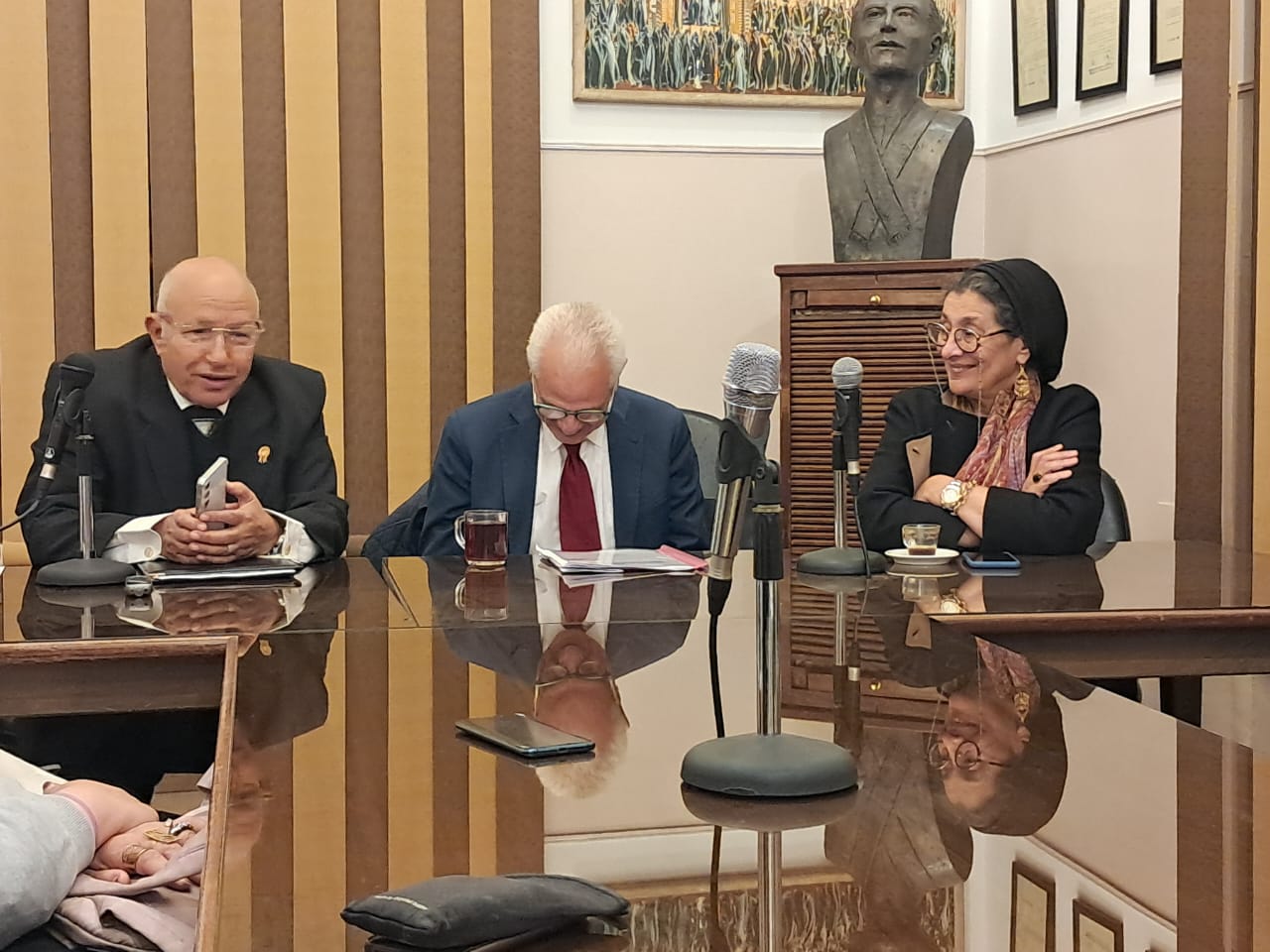 وكانت هناك مداخلات مثمرة من السادة الضيوف عن أهمية اللغات وخاصة اللغة العربية وعدد جذور كلماتها التي تفوق أي لغة أخرى، وأهدى الدكتور الحسيسي فى ختام اللقاء شهادة تقدير من نقابة الكتاب إلى الدكتور حسين محمود، امتنانا لمشاركته المتميزة وإثراء الندوة .
