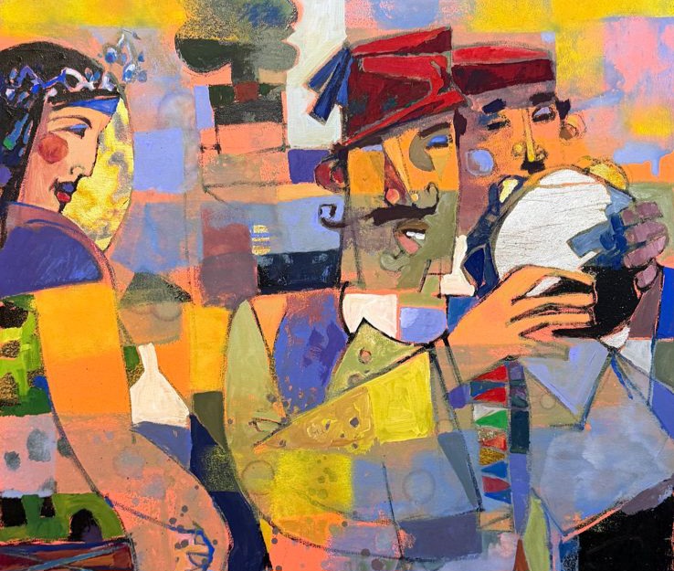 ومن خلال هذه الرؤية، يعيد صياغة عناصر الحياة اليومية، مثل الفلاح والجاموس والعازفين والأواني الفخارية، في بناء بصري يسعى إلى التعبير عن “هندسة المشاعر”، حيث يتحول اللون والخط إلى أدوات لسرد حكاية مصرية معاصرة برؤية مستقبلية.