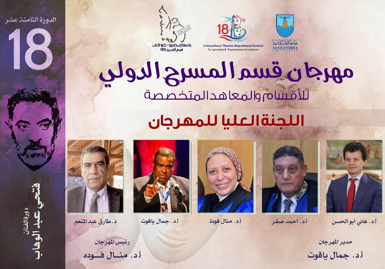 تضم اللجنة العليا للمهرجان نخبة من الأكاديميين والفنانين المتخصصين في مجال المسرح، وهم الدكتور هاني خميس عميد كلية الآداب والرئيس الشرفي للمهرجان، الدكتور هاني أبو الحسن، الدكتور أحمد صقر، الدكتورة منال فودة رئيس المهرجان ، الدكتور جمال ياقوت مدير المهرجان والدكتور طارق عبد المنعم.