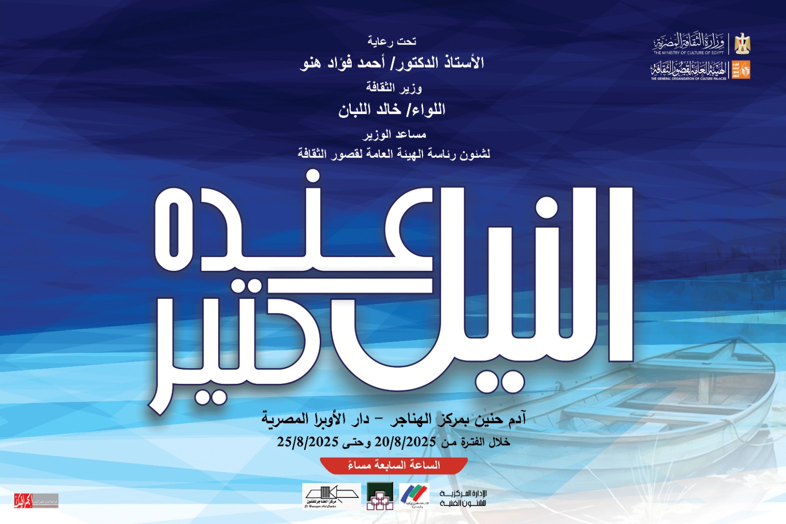 ضمن احتفالات وزارة الثقافة بعيد وفاء النيل، وتحت رعاية الدكتور أحمد فؤاد هنو وزير الثقافة، تفتتح الهيئة العامة لقصور الثقافة برئاسة اللواء خالد اللبان، في السابعة من مساء اليوم الأربعاء، معرضا فنيا ضمن مبادرة “النيل عنده كتير… لعزة الهوية المصرية”، وذلك بقاعة آدم حنين بمركز الهناجر للفنون بدار الأوبرا المصرية، ويستمر حتى 25 أغسطس الجاري.