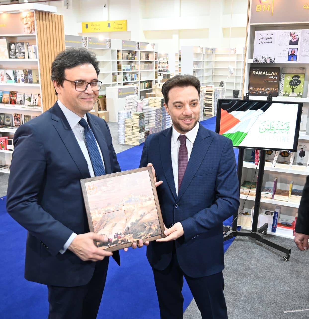 وخلال الافتتاح، قدّم المستشار الثقافي هدية تراثية تذكارية لوزير الثقافة المصري الدكتور أحمد فؤاد هنو، ناقلًا تحيات نظيره الفلسطيني الوزير عماد حمدان ، ومعبّرًا عن بالغ الشكر والتقدير لمصر قيادةً وشعبًا على سياساتها الداعمة للشعب الفلسطيني، كما وجّه الشكر لدعمه الثقافي المتواصل لفلسطين، ولإدارة معرض القاهرة الدولي للكتاب وكافة العاملين والمتطوعين فيه، مؤكدًا الامتنان الدائم للشعب المصري الذي يُشكّل حاضنة حقيقية لفلسطين.