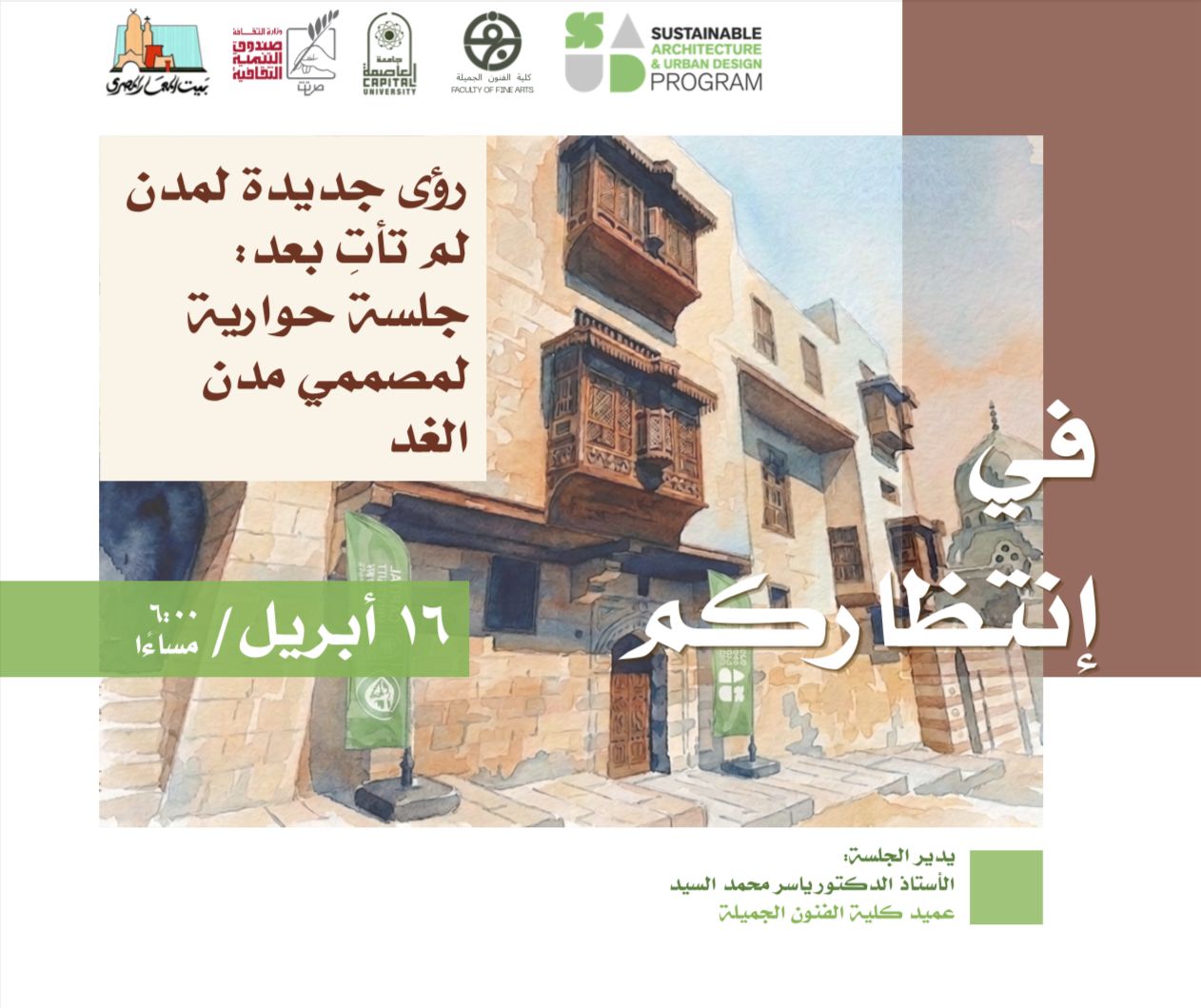 في إطار أنشطة قطاع صندوق التنمية الثقافية، وضمن برامجه المعنية بدعم الحوار المعماري والفكري، يستضيف بيت المعمار المصري جلسة حوارية بعنوان “رؤى جديدة لمدن لم تأتِ بعد”، وذلك ضمن فعاليات معرض برنامج التصميم المعماري والعمراني المستدام، بكلية الفنون الجميلة – جامعة العاصمة.