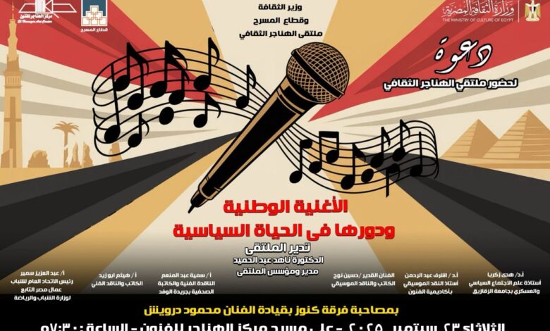 غدا.. “الأغنية الوطنية ودورها في الأحداث السياسية” بملتقى الهناجر الثقافي