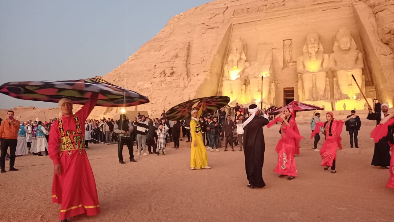 قدمت فرق مهرجان أسوان الدولي الحادي عشر للثقافة والفنون، المقام برعاية الدكتورة نيفين الكيلاني وزير الثقافة، واللواء أشرف عطية محافظ أسوان، عددا من فقراتها الاستعراضية المميزة، صباح اليوم الخميس، بمعبد أبي سمبل، احتفالا بتعامد الشمس على تمثال الملك رمسيس الثاني بقدس أقداس المعبد، بحضور آلاف الزوار من السياح الأجانب والعرب والمصريين وقيادات وزارتي الثقافة والسياحة والآثار ومحافظة أسوان.