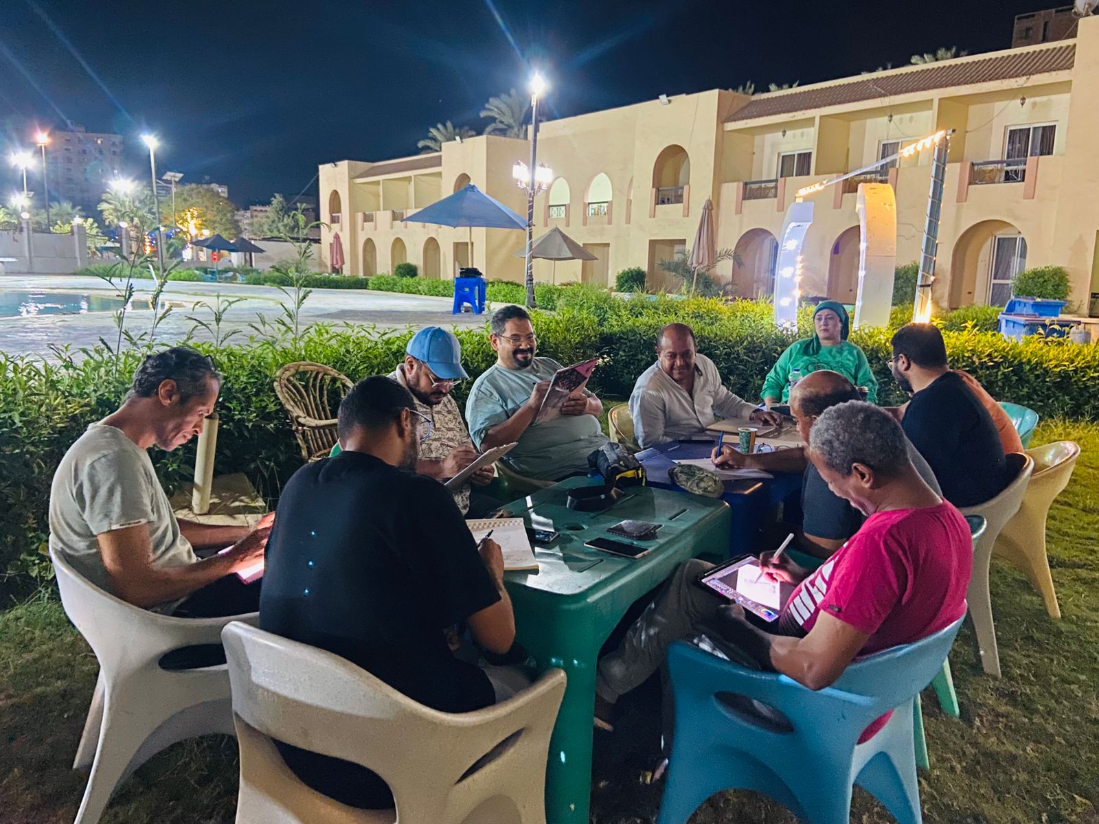 بدأ اللقاء بعرض أفلام تسجيلية عن مدينة الفيوم، أعقبها جلسات حوارية لتبادل الرؤى المستوحاة من الجولات الميدانية للفنانين، التي شملت زيارة قرية تونس ومتابعة صناعة الخزف، ومتحف الكاريكاتير، وقرية النزلة للتعرف على الحرفيين وصناع الفخار، فضلا عن زيارة أهرامات الفيوم “اللاهون وهوارة”، وقرية بهيمو وما تضمه من آثار للملك أمنمحات الثالث، إلى جانب جولة على بحيرة قارون وما يحيط بها من طبيعة خلابة.