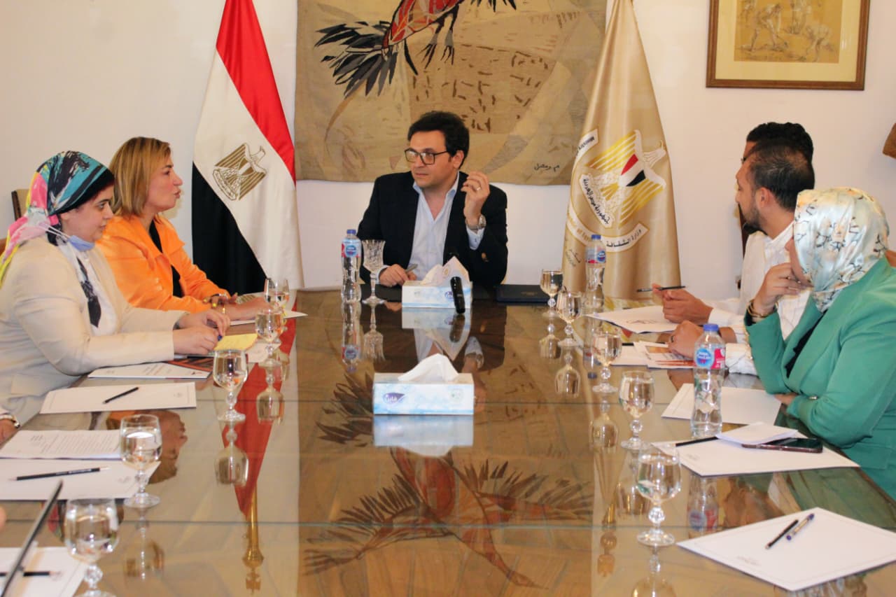 استقبل الدكتور أحمد فؤاد هنو، وزير الثقافة، وفدًا من مسؤولي منصة “حوار” بمركز المعلومات ودعم اتخاذ القرار بمجلس الوزراء، وأصحاب المبادرات الأعلى تقييمًا من اللجنة الدائمة لدراسة وفرز الأفكار والمبادرات الواردة على المنصة في قطاع الثقافة، وذلك لتكريمهم ومناقشة أفكارهم وآليات تنفيذها.