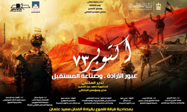 ضمن فعاليات وزارة الثقافة للاحتفال بذكرى نصر أكتوبر المجيد، يناقش قطاع المسرح برئاسة المخرج هشام عطوة، 7 محاور رئيسية فى ملتقى الهناجر الثقافي الذى يأتى هذا الشهر بعنوان “أكتوبر 73 عبور الإرادة وصناعة المستقبل” وذلك فى السابعة من مساء يوم الأحد 9 نوفمبر الجاري بمركز الهناجر للفنون برئاسة الفنان شادي سرور .