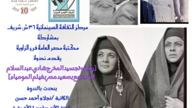 يشارك مركز الثقافة السينمائية التابع للمركز القومي للسينما بالتعاون مع مكتبة مصر العامة بالزاوية بإحتفالية( يوم شادي عبد السلام)…