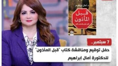 تحتفل الدكتورة آمال إبراهيم، استشارية العلاقات الأسرية، الأحد المقبل الموافق 7 سبتمبر، بمناقشة وتوقيع كتابها “قبل المأذون”، والصادر عن…
